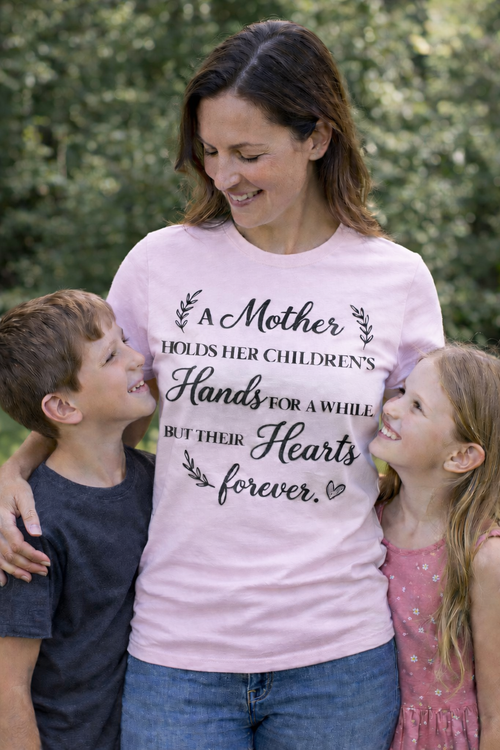 A Mother Holds Her Children's Hands Hearts Forever T-Shirt | Motherhood Shirt